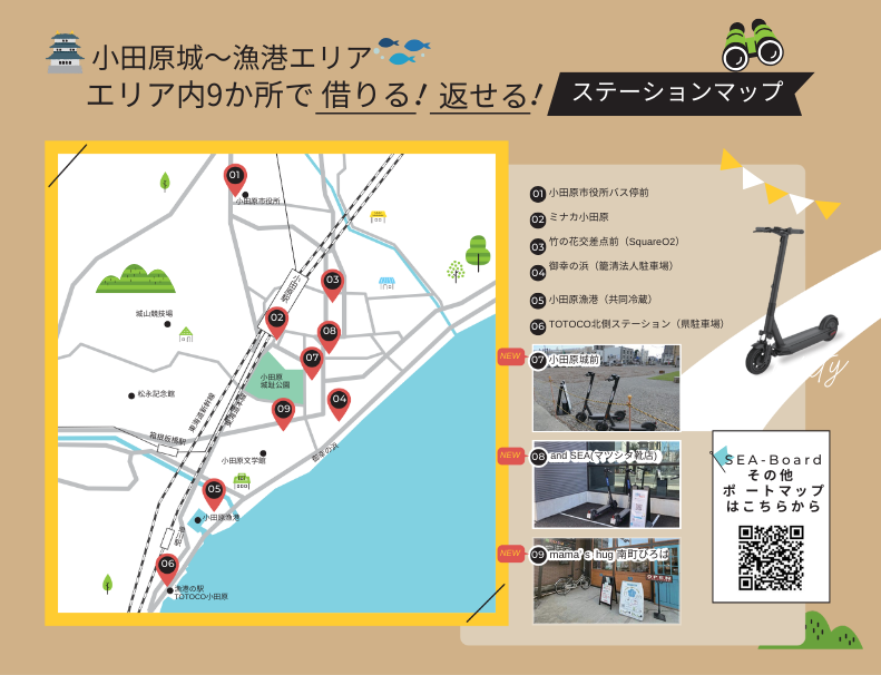 この取組では、小田原・真鶴など西湘・足柄エリアの各市町に電動キックボードや電気自動車をレンタルできる拠点を設置します。7車種のBEV(バッテリーのみで駆動する電気自動車)、電動キックボードといった新世代モビリティから自由に移動手段を選択し、公園や観光スポット、グルメスポットなどを思うままに巡ることができます。
