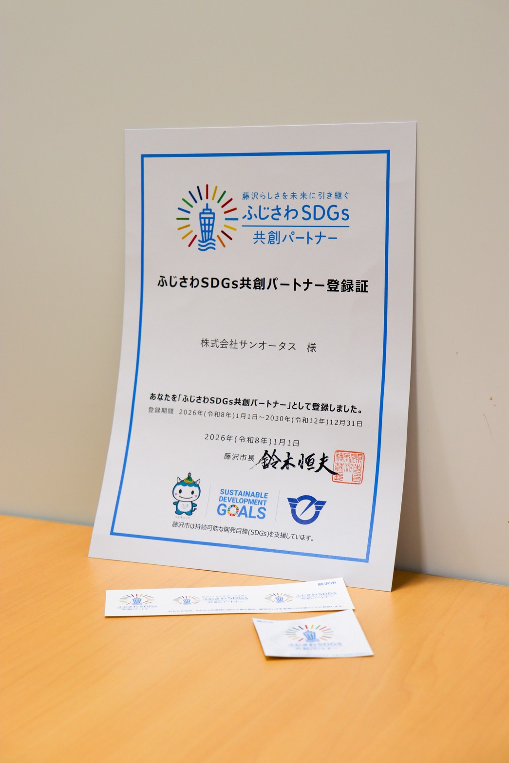 1月1日、サンオータスが藤沢市の「ふじさわSDGs共創パートナー」として正式に登録されました!
