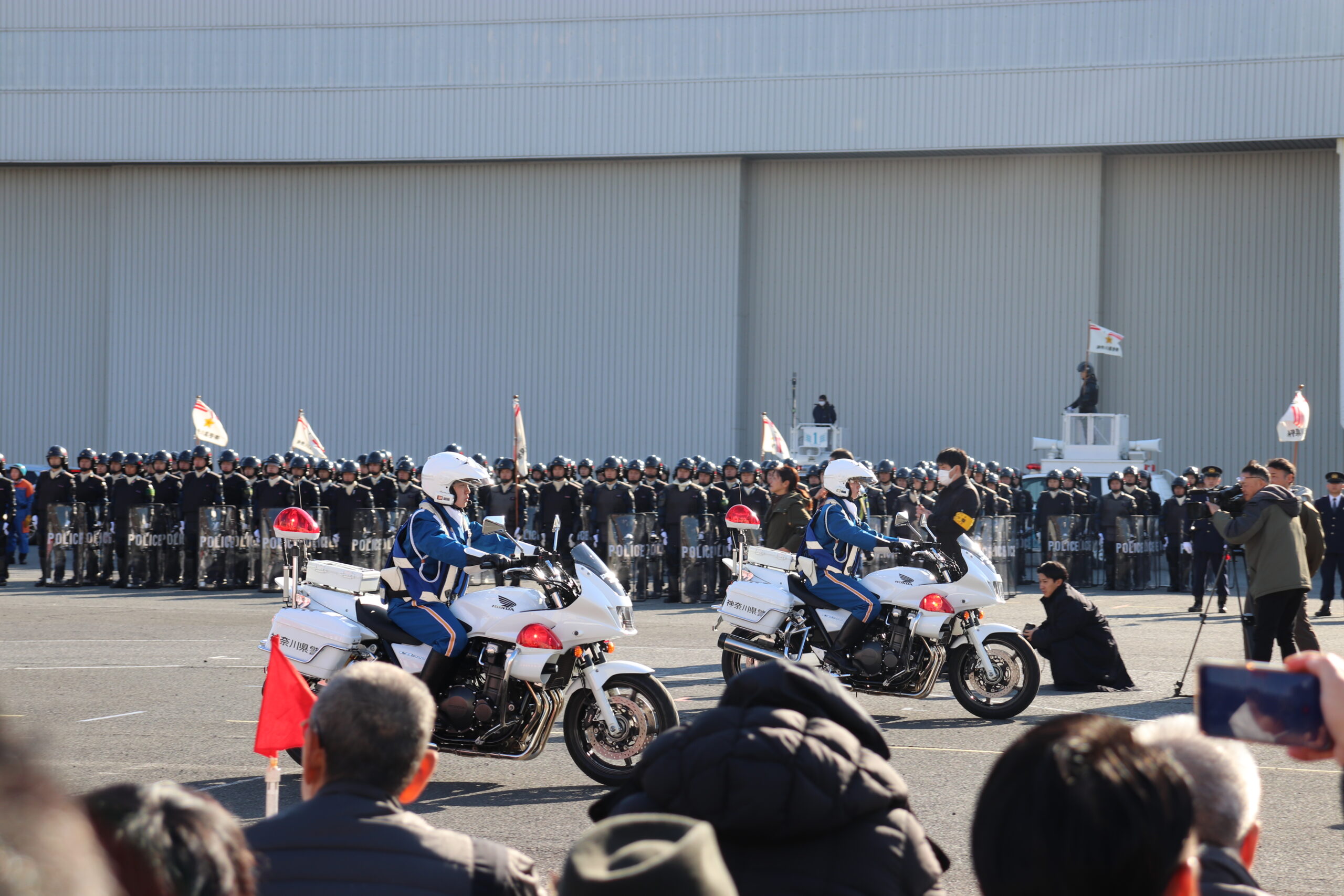 昨年に続きまして本年も神奈川県警第一機動隊訓練場にて開催された、神奈川県警年頭視閲式にご招待していただきました。